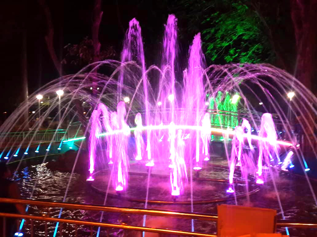 All the pumps and lights are controlled by a control panel. With the correct adjustment on the panel, a colorful water and lights show is achieved to the enjoyment of the public.