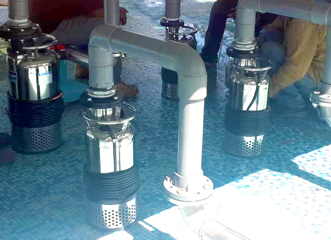 The whole fountain system is meticulously designed to provide water fountain with the intended height and length. Each pump is sized according to the number of nozzles, length and sizes of the pipes.